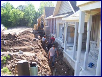 July 12, 2004 - The first 4-plex building is just about ready for the floor slab and the footings are being poured for the 6-plex building. |